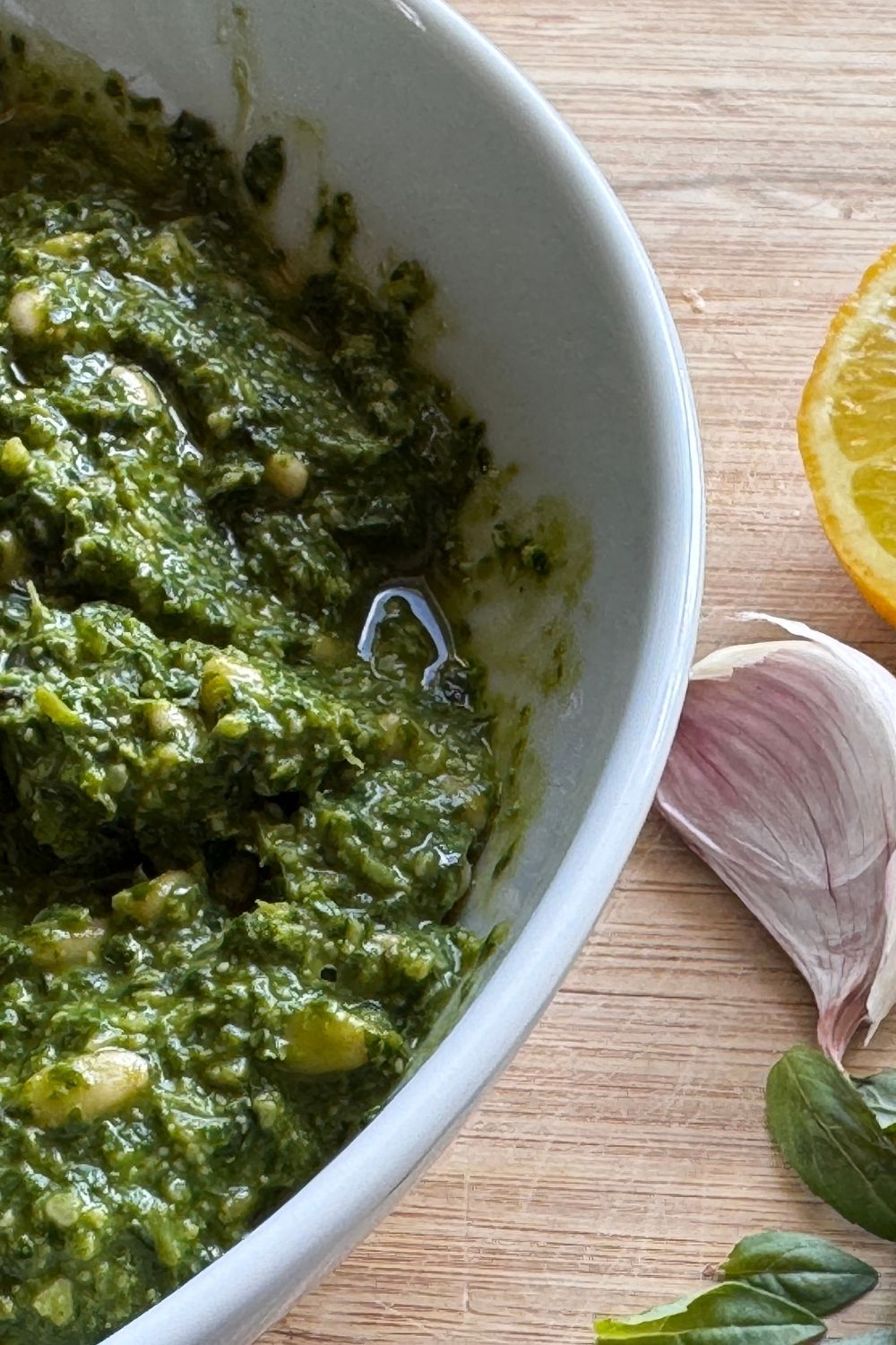 Fresh, vibrant, and bursting with flavour, this homemade green basil pesto is not only gluten free and dairy free, but also healthy and truly yummy! Unlike store bought jars that contain cheese, this vegan friendly version delivers a rich, creamy texture by blending half the pine nuts and keeping the rest whole for a delicious crunch.